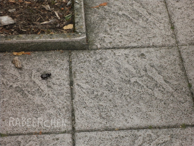 Und jetzt kommt es…am Abend nach dem Heidebesuch sind wir kurz bei meinen Eltern vorbeigefahren. Sie leben nicht direkt im Naturschutzgebiet, soviel sei gesagt. Und mitten vor der Haustür sitzt wieder ein solcher Nashornkäfer. Ich war wie versteinert als ich ihn da krabbeln sah. Denn ich habe ihn zuvor nur leblos gesehen und das ist nun auch schon ca. 20 Jahre her. Wir haben Ihn auf eine Schaufel krabbeln lassen und ihn hinter das Haus gebracht…ich hatte kribbeln im Bauch. Einerseits, weil ich es liebe solche Tiere zu sehen und andererseits, weil ich so große Käfer hier in der Großstadt echt nicht mehr gewohnt bin.