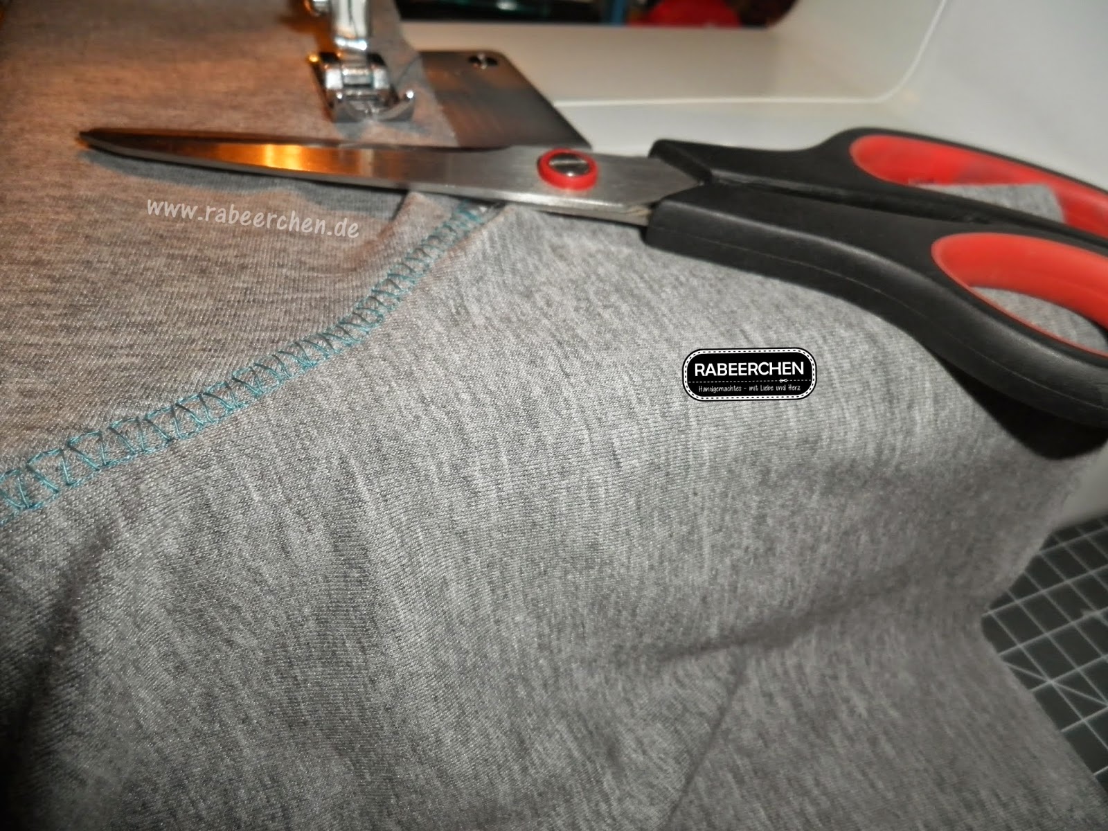 Zuerst habe ich also den Pullover genäht und bin wirklich überrascht, dass es gar nicht so schwer war, auch in dieser Größe noch Bündchen und Halsauschnitt sauber anzunähen.