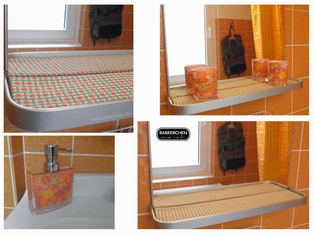 Nun musste aber noch irgendwas witziges her. Die Größe des Badezimmers lässt nicht nicht viele Möglichkeiten. Beim Putzen habe ich mich mal wieder über die Glas-Ablage des Spiegels geärgert, denn Glas ist wirklich undankbar.