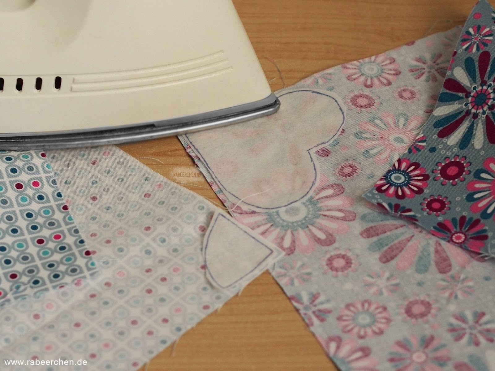 04| Die ausgeschnittenen Vliesestücke werden nun auf den ausgesuchten Stoff gelegt und aufgebügelt. Beachte bitte die Angaben des jeweiligen Bügelvliese Herstellers
